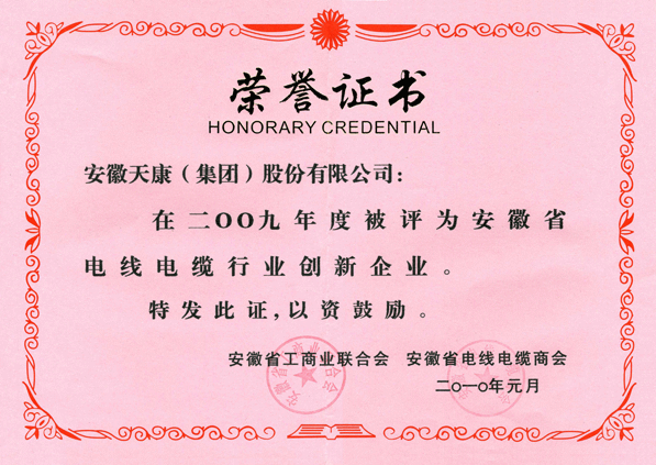 安徽省電線電纜行業(yè)創(chuàng)新企業(yè)(集團(tuán)公司09年度)