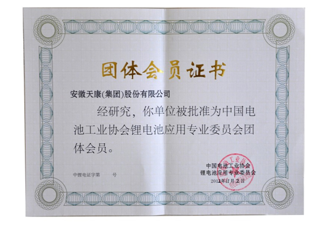 電池工業(yè)協(xié)會(huì)團(tuán)體會(huì)員證書